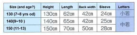 CAUTION : Children size Hanten has LETTERS on Lapels.